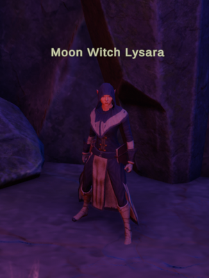 Moon Witch Lysara is a level 26 named mob in Knightwolf Knoll (Eastern Plains).